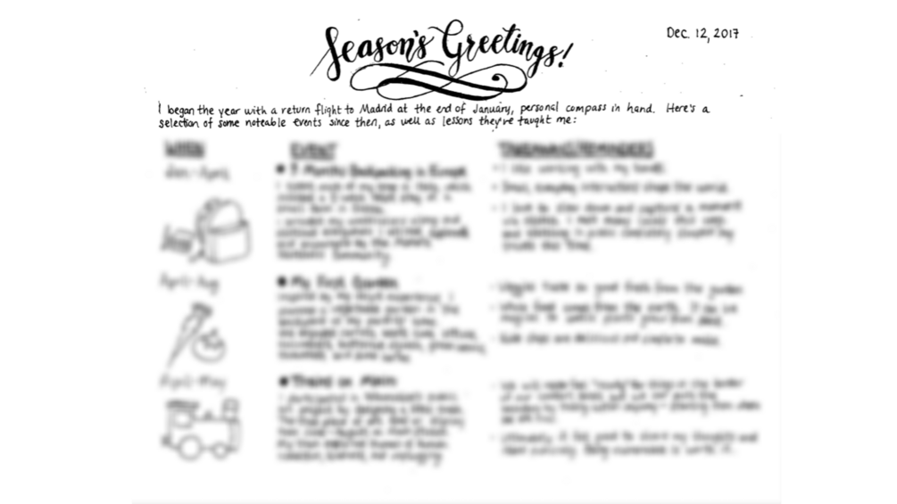 These are my handwritten holiday letters from the past two years, which I mail to friends and family. You'll receive two PDFs via download: 2016's is one page and 2017's is four pages long.